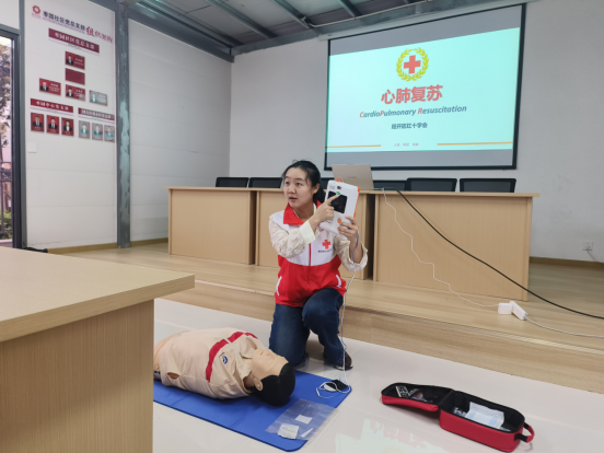 活动现场,市红十字会应急救护师资还为社区居民带来了一堂生动实用的应急救护知识普及课。师资通过“理论精讲+案例分析+实操演练”教学模式,向居民传授了心肺复苏、止血包扎等急救技能,进一步提高了社区居民在突发事件中的自救互救能力。现场互动积极、气氛热烈,得到了社区居民的一致好评。