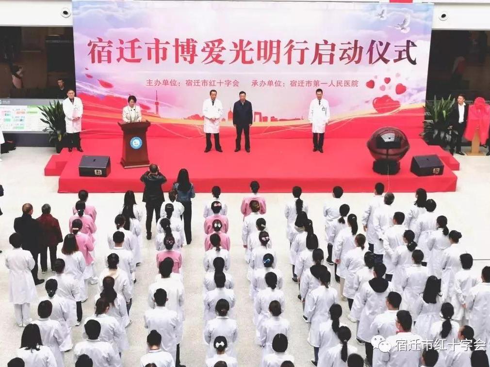 10月16日上午,“宿迁市博爱光明行”公益项目启动仪式在宿迁市第一人民医院举行。副市长、市红十字会会长薛启书,市红十字会党组副书记、副会长夏雪梅,第一人民医院党委书记吴小雨、副院长严友德出席了仪式,全市医护人员代表参加了启动仪式。启动仪式由严友德主持。