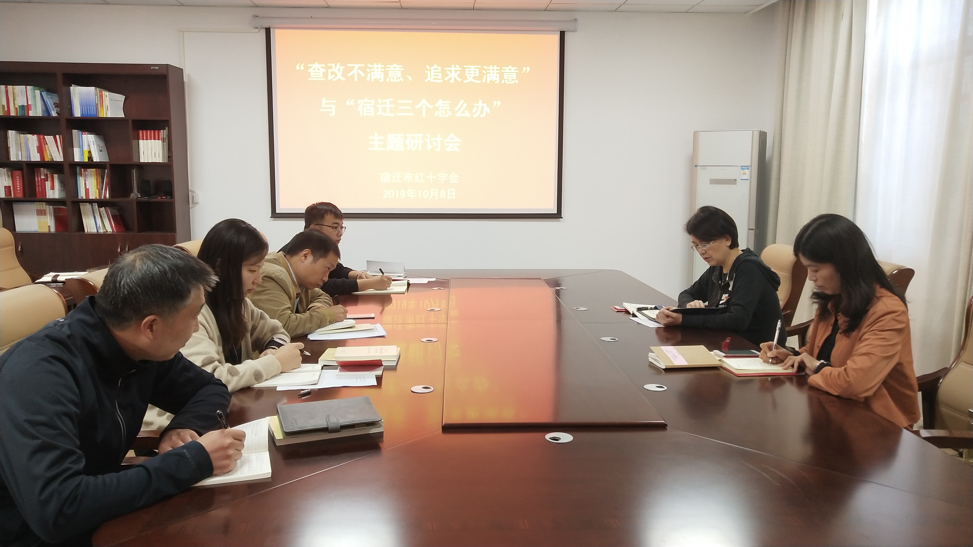 2019年10月8日,为把握好“不忘初心、牢记使命”主题教育,回答好“宿迁三个怎么办”,开展好“查改不满意、追求更满意”为民服务解难题活动,市红十字会结合自身情况,召开“‘查改不满意、追求更满意’与‘宿迁三个怎么办’主题研讨会”。会上大家踊跃发言、讨论热烈,最后由市红十字会党组副书记、副会长夏雪梅做总结发言。