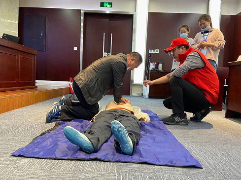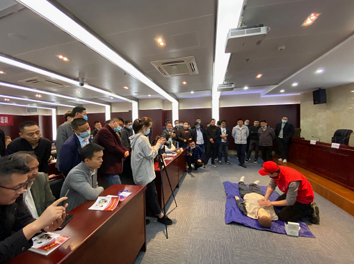 培训现场,市红十字会急救培训师通过理论知识讲解和现场演练相结合的方式,从救护新概念及日常意外受伤的简单处理方法、气道异物梗塞的预防和现场急救、心肺复苏适合对象和具体操作流程等方面进行了讲解。并利用仿真模拟人进行操作演示,学员们学得认真,听得仔细,并在培训师的指导下分组进行心肺复苏实际操作,切身感受操作的过程和细节。