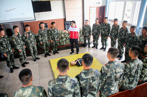 为增强辖区驻地武警官兵的安全意识,提升其应对突发情况及意外伤害事故的应急救护能力,近日,宿迁市红十字会来到武警江苏总队宿迁支队开展“应急救护培训进军营”活动,在八一建军节到来之前,为官兵们送去关爱。