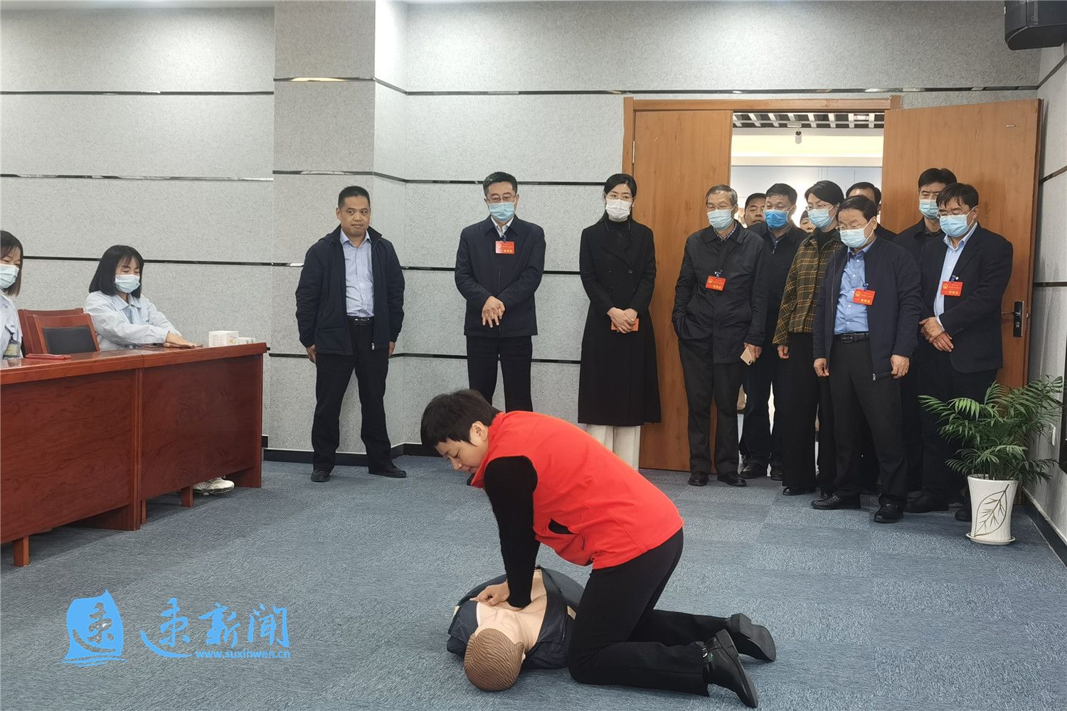 在市红十字会应急救护培训基地,何通一行边走边看,实地体验了健康应急救护区、机械安全体验区等模块中的灾害避险、火灾逃生、家庭安全等应急救护技能。何通对我市红十字应急救护等各项工作给予了充分肯定,他指出,要规范开展好应急救护培训工作,充分利用好应急救护培训基地的资源,让更多市民更好、更快地学习了解应急救护基本知识,掌握自救互救本领,真正把“人道、博爱、奉献”的红十字精神根植到广大人民群众心中。