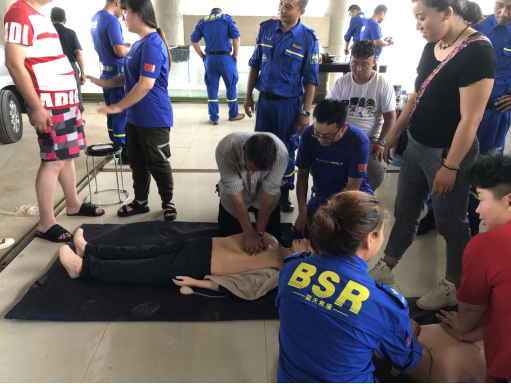 区红十字会授课老师为蓝天救援队队员们讲解了简单包扎和烧伤处理并进行了实践操作方面的培训;系统讲解了心脉复苏,对心脉复苏进行了现场演练。队员们专心致志,热情高涨。在老师的指导下,利用拟人道具进行了胸部按压操作演练。