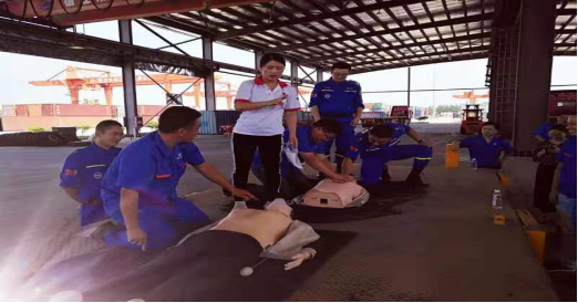 宿迁港是苏北地区重要的经济港口之一,一线高危作业职工较多,我们宿城区红十字会授课老师针对高危职业,定制专门的授课计划,采用互动的方式,围绕突发事件(烧伤骨折、港口溺水)等一系列的教学,结合日常生活和工作,分别就心肺复苏和意外急救两个部分进行了示范和讲解。重点讲解了如何把握时间,争分夺秒,有效地进行安全应急救护。