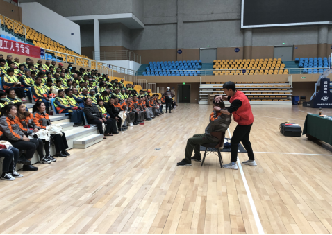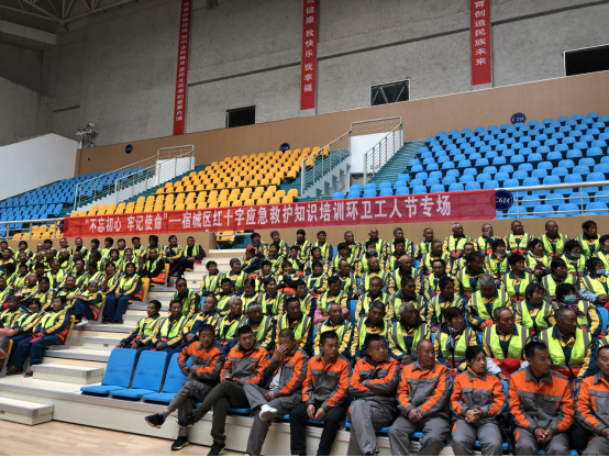 环卫工人节在即,2019年10月25日下午,结合“不忘初心、牢记使命”主题教育,宿城区红十字会联合宿城区环卫局在宿城区文体中心体育馆举办应急救护知识培训,270名环卫工人参加此次培训。