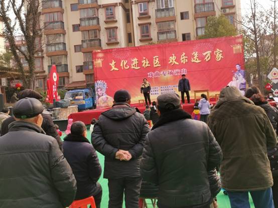 1月14日下午,应宿豫区红十字会和庐山社区邀请,2020年“文化进社区 欢乐送万家”惠民活动戏曲专场文艺演出在社区红十字博爱广场举行,市区各有关部门负责同志、艺术工作者、非遗代表性传承人以及社区居民近100人观看文艺演出。